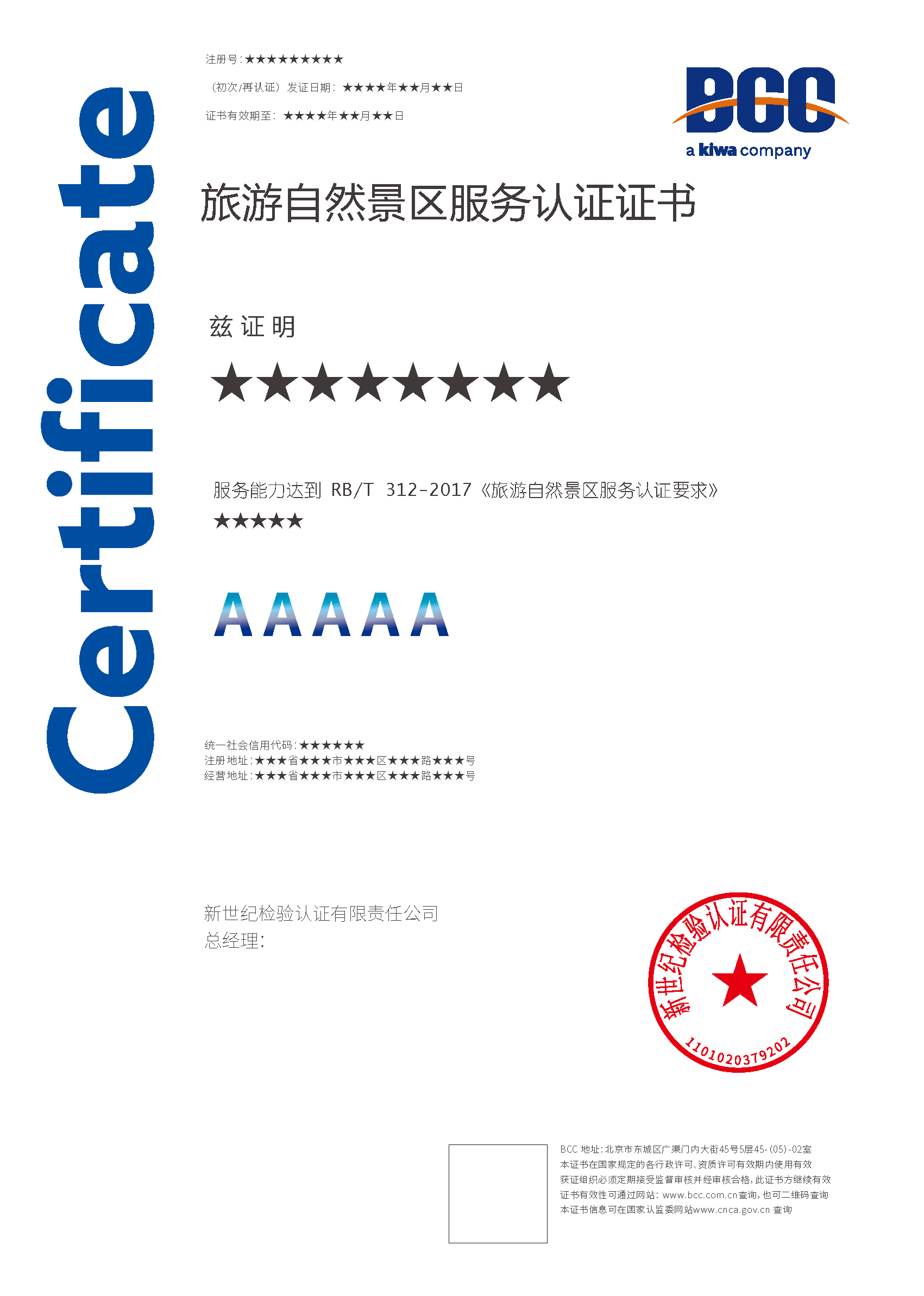 旅游自然景區(qū)服務(wù)認(rèn)證