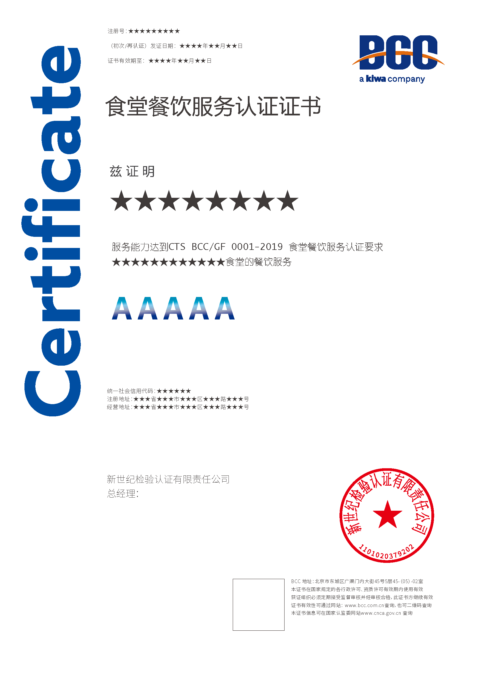 食堂餐飲服務(wù)認(rèn)證的結(jié)果分為通過、不通過兩種。服務(wù)認(rèn)證結(jié)果的排序,通常從低至高,分為A級(jí)至AAAAA級(jí)等5個(gè)級(jí)別。