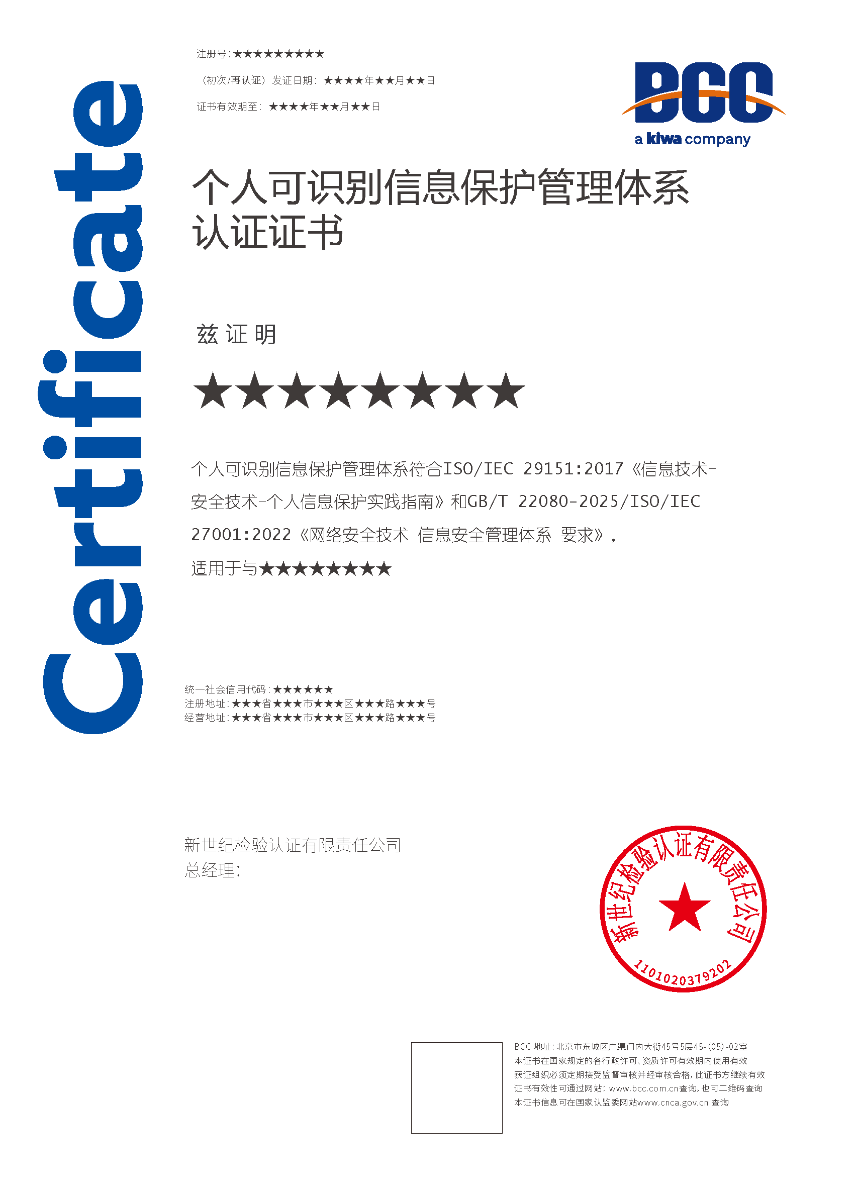 本頁涉及的認(rèn)證服務(wù)中均有對應(yīng)的《認(rèn)證實(shí)施規(guī)則》,BCC擁有其最終解釋權(quán)。任何組織及個人未經(jīng)BCC許可,不得以任何形式全部或部分使用(法律要求除外)認(rèn)證相關(guān)信息。如需獲取相關(guān)實(shí)施規(guī)則請用以下方式聯(lián)系獲?。弘娫挘?10-58579316 郵箱:fwjs@kiwa.cn