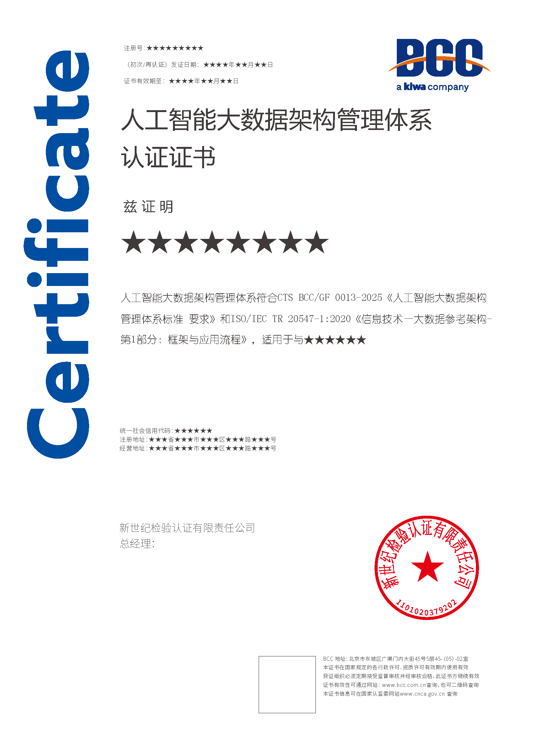 本頁(yè)涉及的認(rèn)證服務(wù)中均有對(duì)應(yīng)的《認(rèn)證實(shí)施規(guī)則》,BCC擁有其最終解釋權(quán)。任何組織及個(gè)人未經(jīng)BCC許可,不得以任何形式全部或部分使用(法律要求除外)認(rèn)證相關(guān)信息。如需獲取相關(guān)實(shí)施規(guī)則請(qǐng)用以下方式聯(lián)系獲取:電話:010-58579316 郵箱:fwjs@kiwa.cn