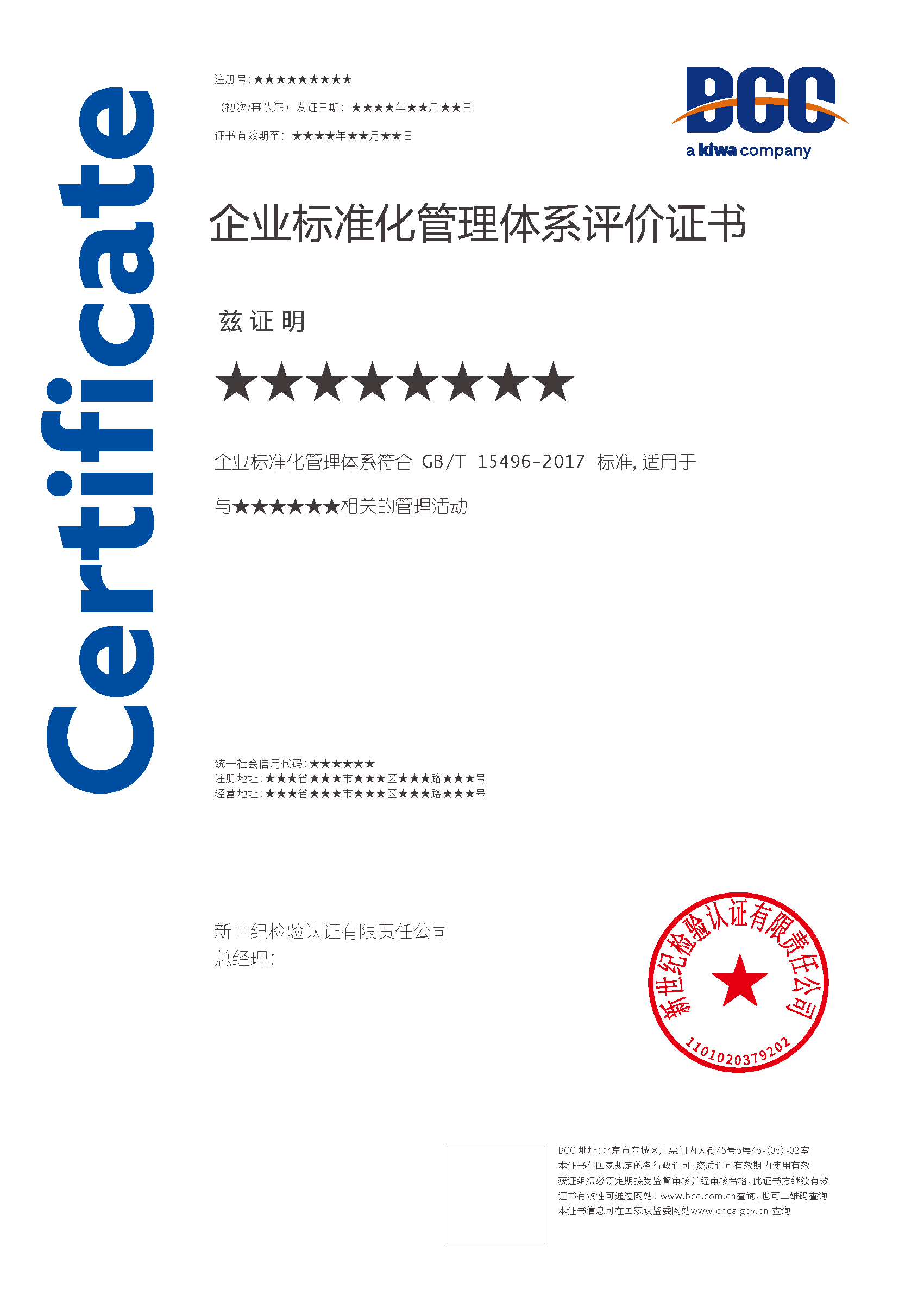 本頁(yè)涉及的認(rèn)證服務(wù)中均有對(duì)應(yīng)的《認(rèn)證實(shí)施規(guī)則》,BCC擁有其最終解釋權(quán)。任何組織及個(gè)人未經(jīng)BCC許可,不得以任何形式全部或部分使用(法律要求除外)認(rèn)證相關(guān)信息。如需獲取相關(guān)實(shí)施規(guī)則請(qǐng)用以下方式聯(lián)系獲取:電話:010-58579316 郵箱:fwjs@kiwa.cn