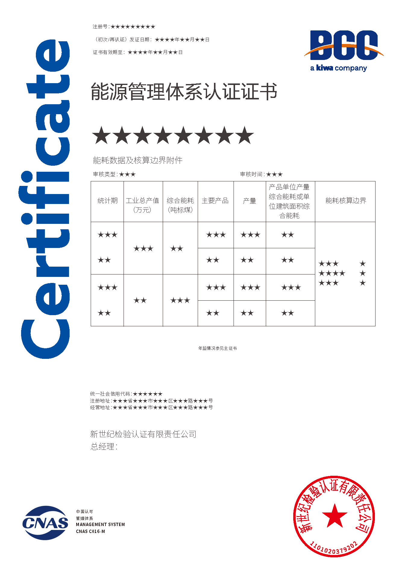 除此以外,申請(qǐng)能源管理體系認(rèn)證的企業(yè)還需提交一些輔助資料,如用能單位及邊界描述;能源使用和消耗情況等。