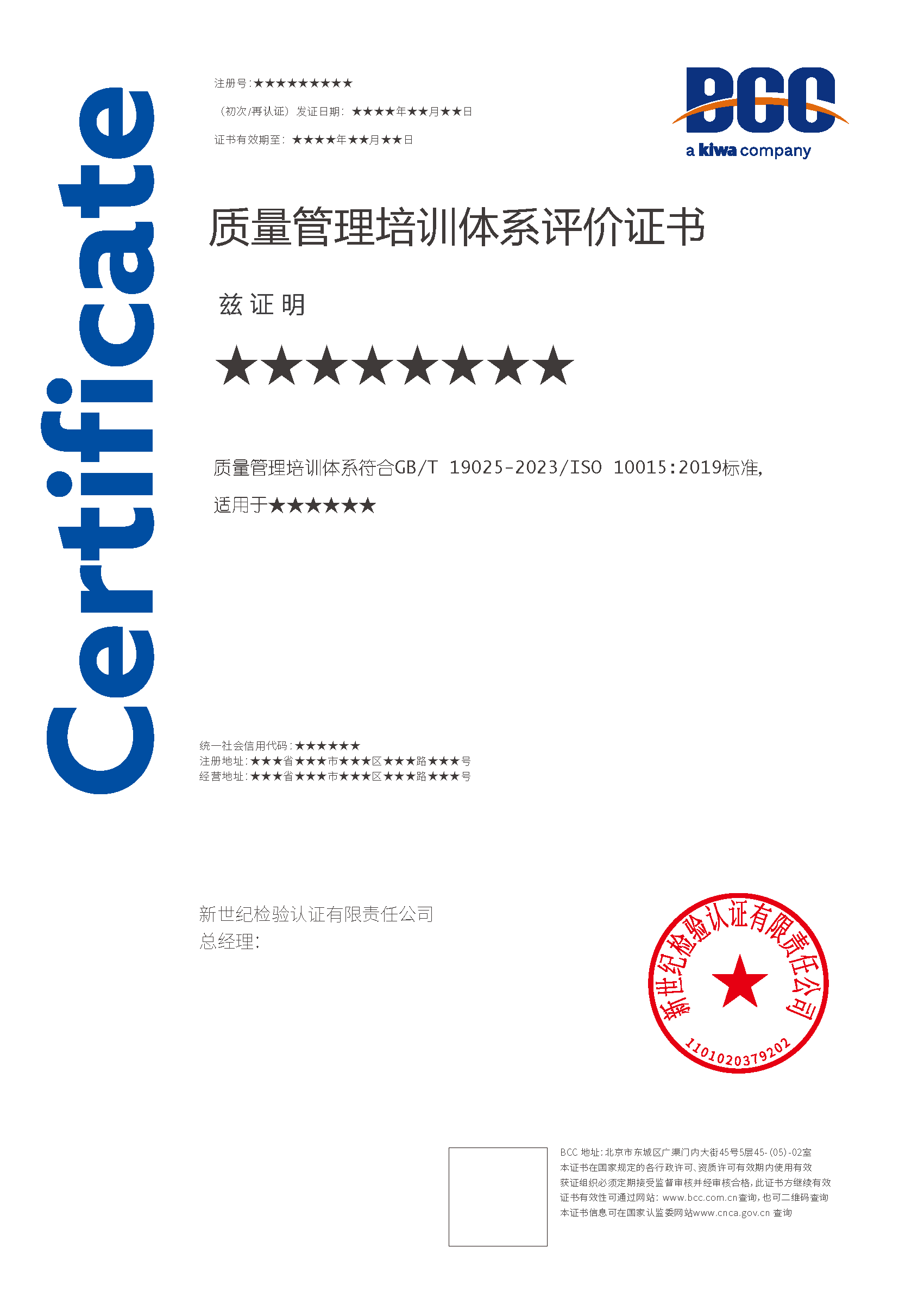 質量管理培訓評價,是依據GB/T 19025-2001 idt ISO 10015:1999標準實施的認證,旨在幫助組織建立并規(guī)范管理培訓的各個環(huán)節(jié),提供關于組織培訓的指導原則和最佳實踐,不斷提升員工素質和能力,增強組織的競爭力。