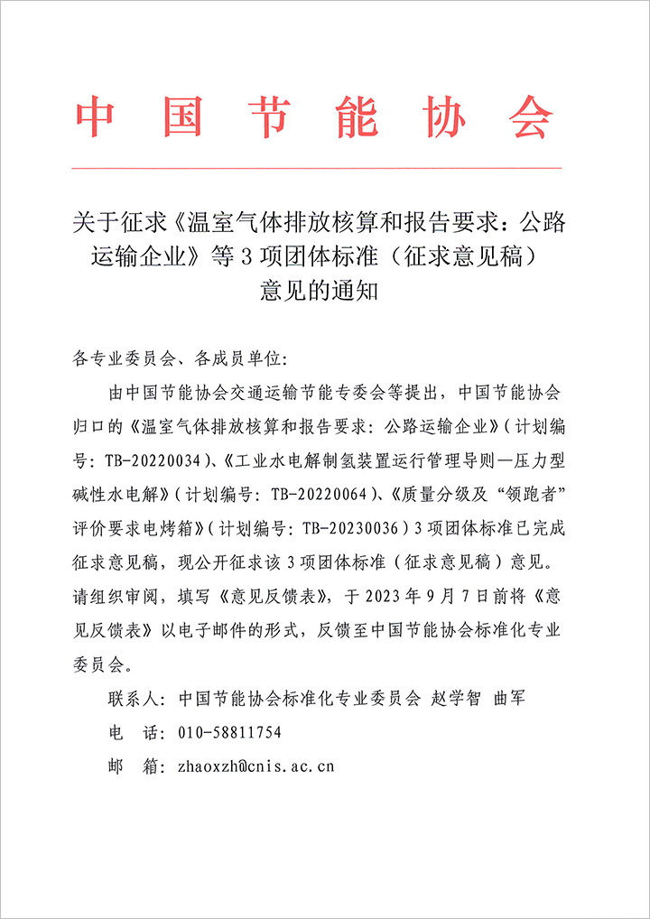 關于征求《溫室氣體排放核算和報告要求:公路運輸企業(yè)》等3項團體標準(征求意見稿)意見的通知