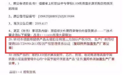 蘇州市滄浪中學(xué)校招標(biāo)要求之一:產(chǎn)品生產(chǎn)廠家獲得GB/T29490-2013知識(shí)產(chǎn)權(quán)管理體系認(rèn)證,3分。