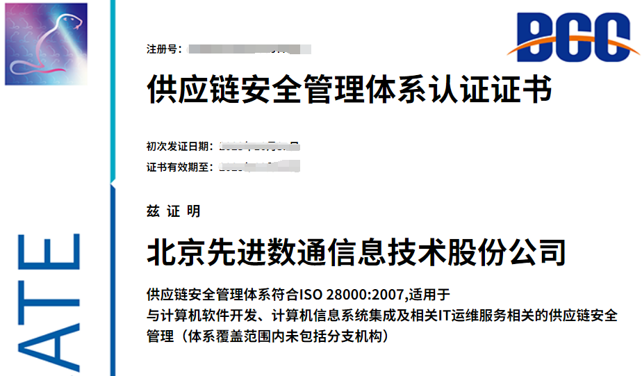 先進數(shù)通獲得供應(yīng)鏈安全管理體系認證,是對自身供應(yīng)鏈的梳理和整合,不但加強對供應(yīng)鏈安全的風(fēng)險控制,提高風(fēng)險防御能力,還提高了企業(yè)的美譽度和市場競爭力。
